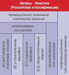 В частности, международный термин reserves не является полным аналогом термина «запасы» в российской классификации (по смыслу он ближе к «извлекаемым запасам участка, вскрытого скважиной»).